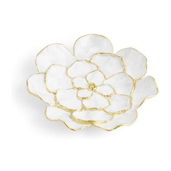 - Handcrafted with goldtone and hand-enameled gardenia blooms, this elegant catch-all adds timeless sophistication to any space.