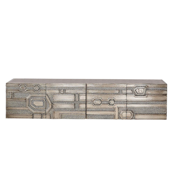 Global Views Abstract Block Cabinet with Floating Shelf - Silver