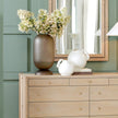 - The matte tobacco glass and footed design makes a moody statement in our Ashton vases.