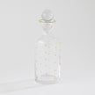 - Handcrafted from clear glass adorned with dainty golden dots and a radiant gold rim, each piece exudes sophistication and festivity