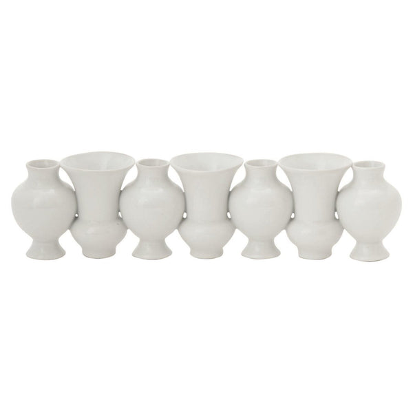 - Perfectly posed alternating urn and jar linked mini Chinoise vases create the linear multi-bud vase.