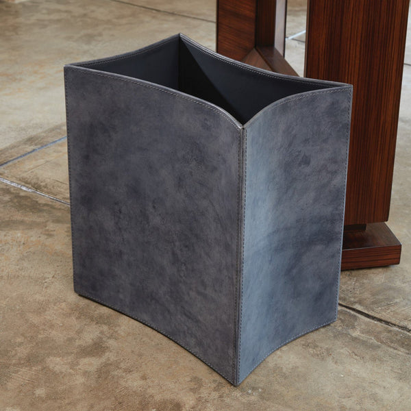 - Our Folded Leather Waste Basket brings simple tidiness to a sometimes sloppy situation.