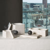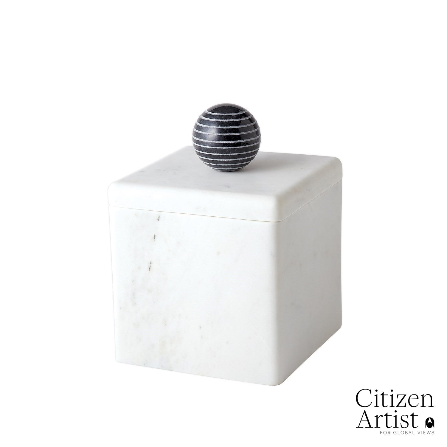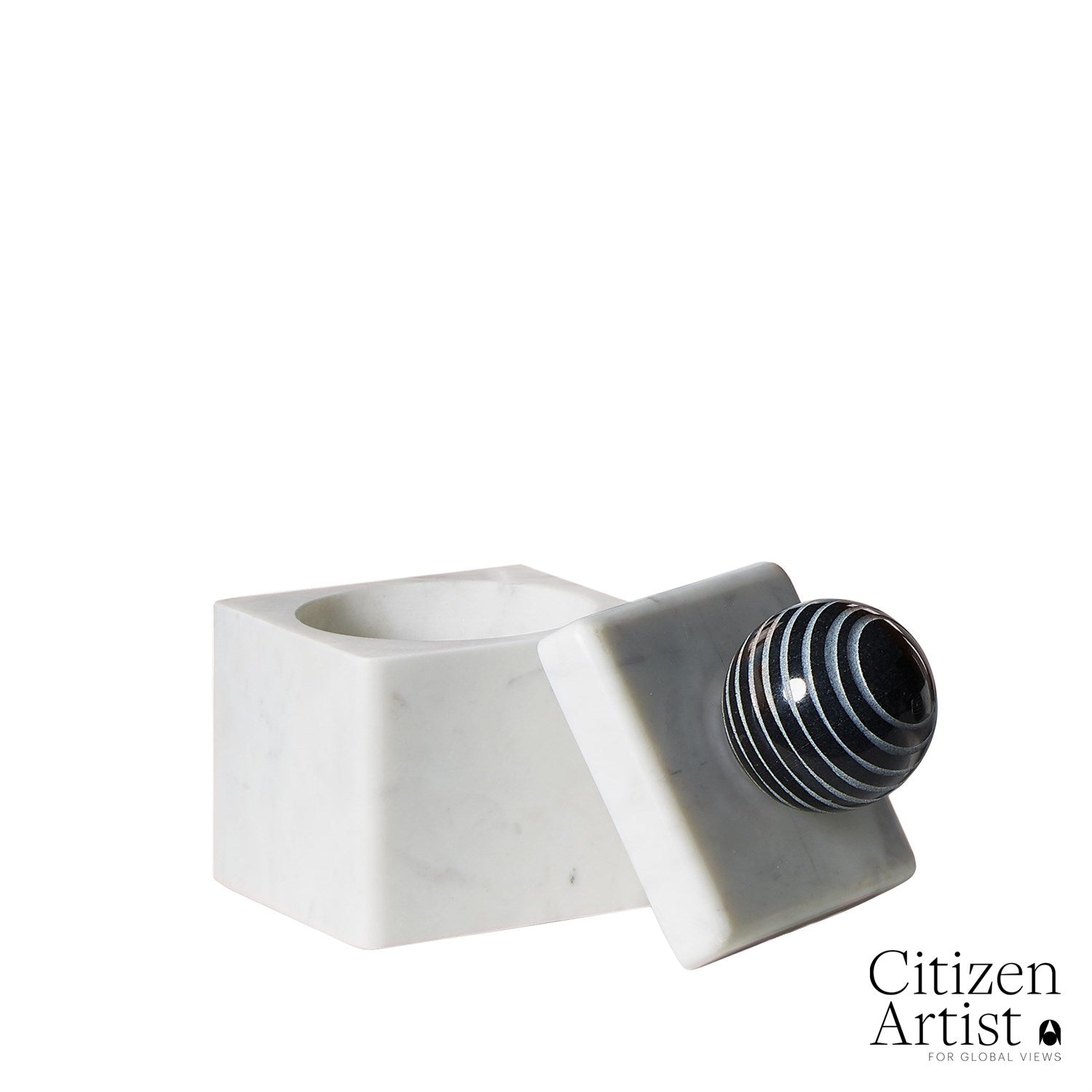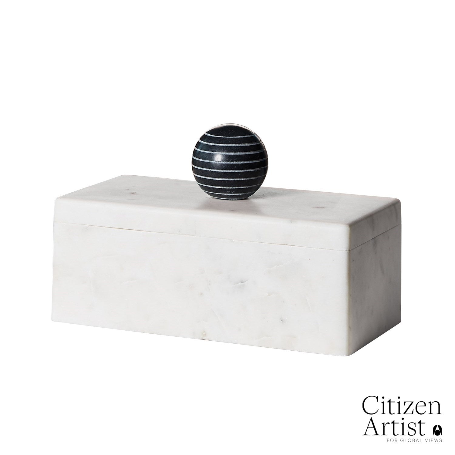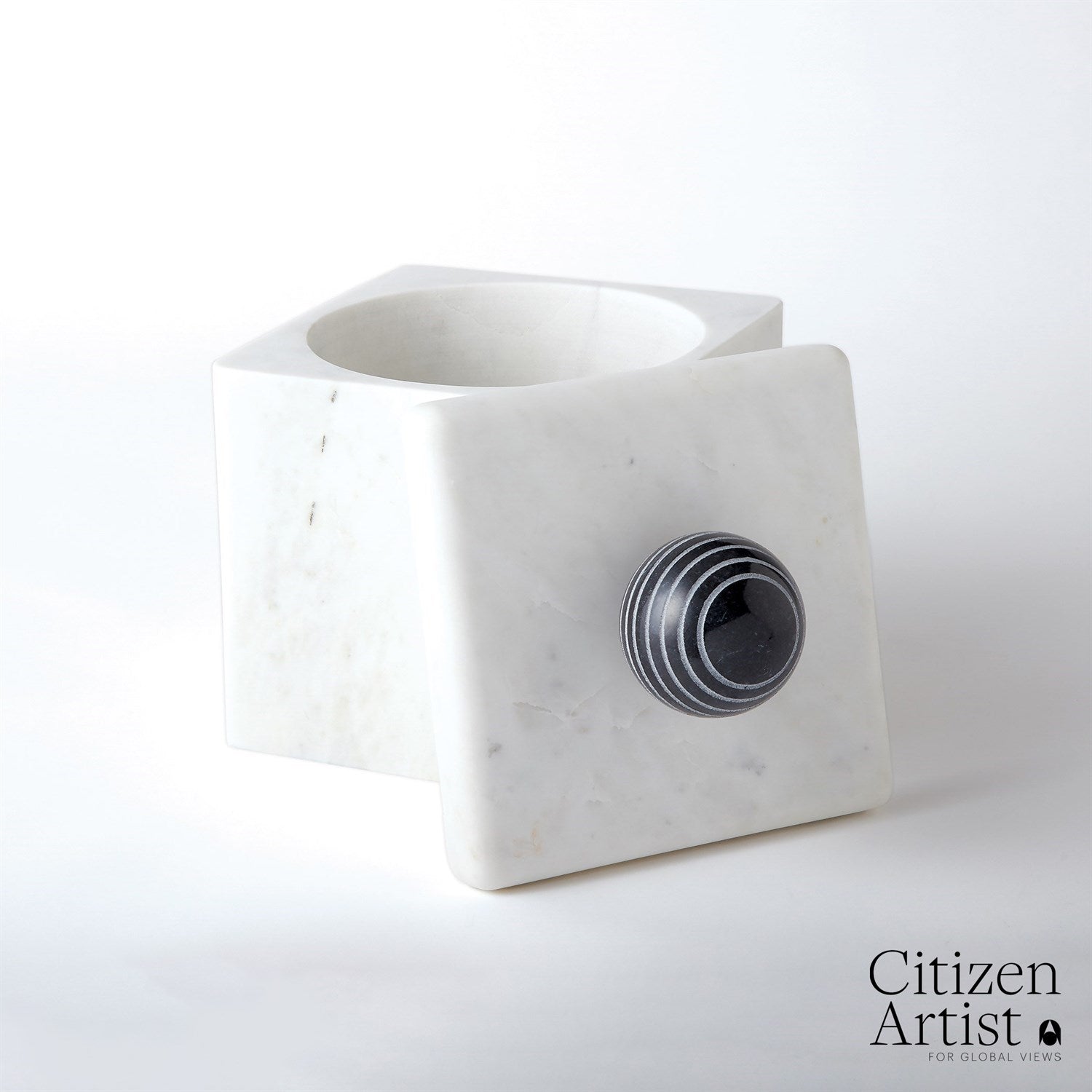 - Carved from a solid piece of white marble with an etched black marble handle, La Boite?s elegant curves and bold proportions make it as visually arresting as it is functional.