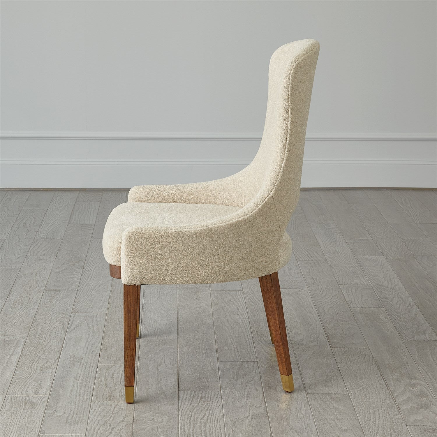 - The bouclé fabric is stain resistant for years of use and the slightly domed seat supports in all the right areas.
