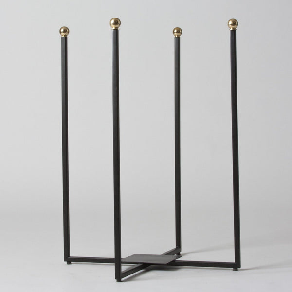 - Four black iron posts topped with round brass finials, nickel finials hold your favorite pillows all in one place.