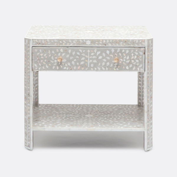 - A shell-inlay floral design made from mother of pearl adds an iridescent sheen to this ultrafeminine piece.