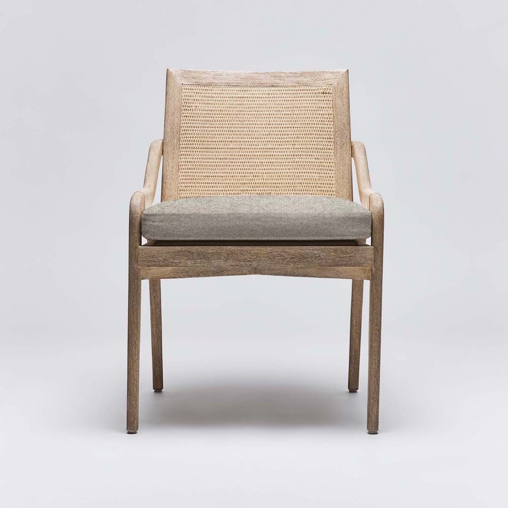 - White ceruse wood paired with off white caning lends the Delray Side Chair an airy and inviting whiff of sophistication.