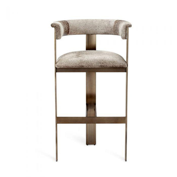 - Boasting an art moderne influence, the Darcy Bar Stool features a natural grey hide seat and a streamlined stainless steel frame in an polished nickel finish.