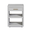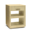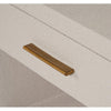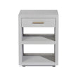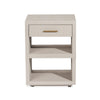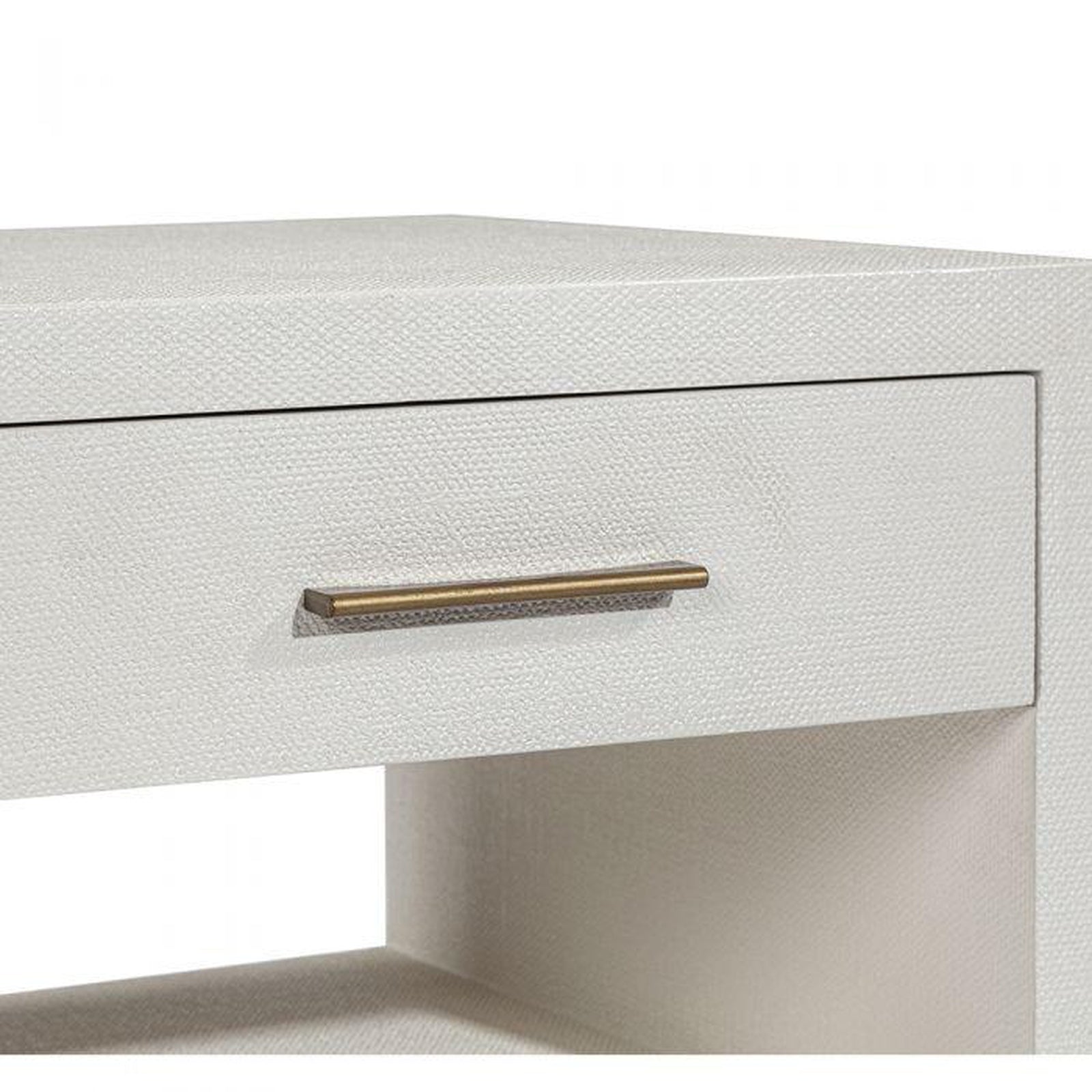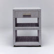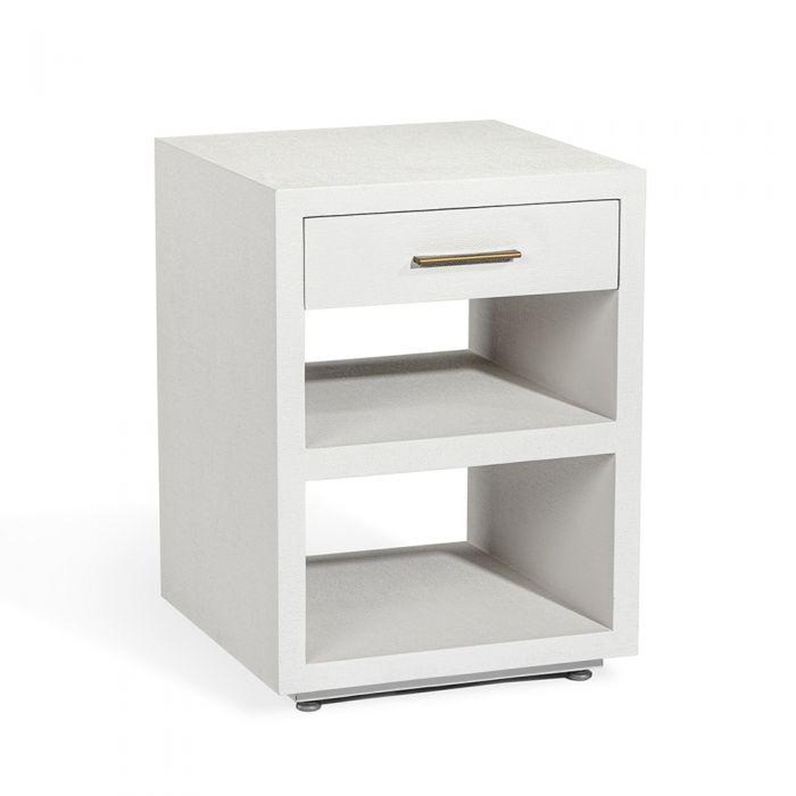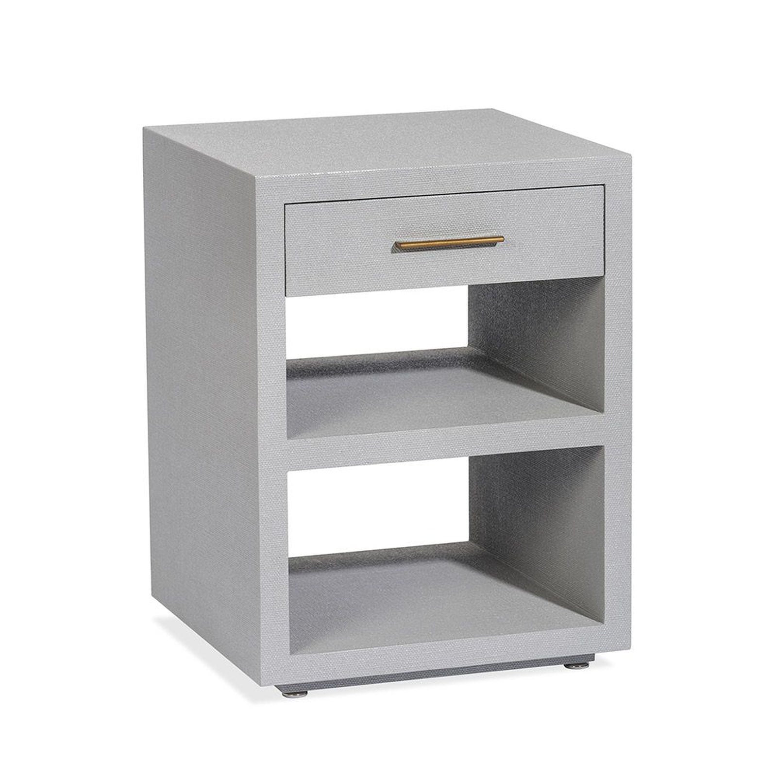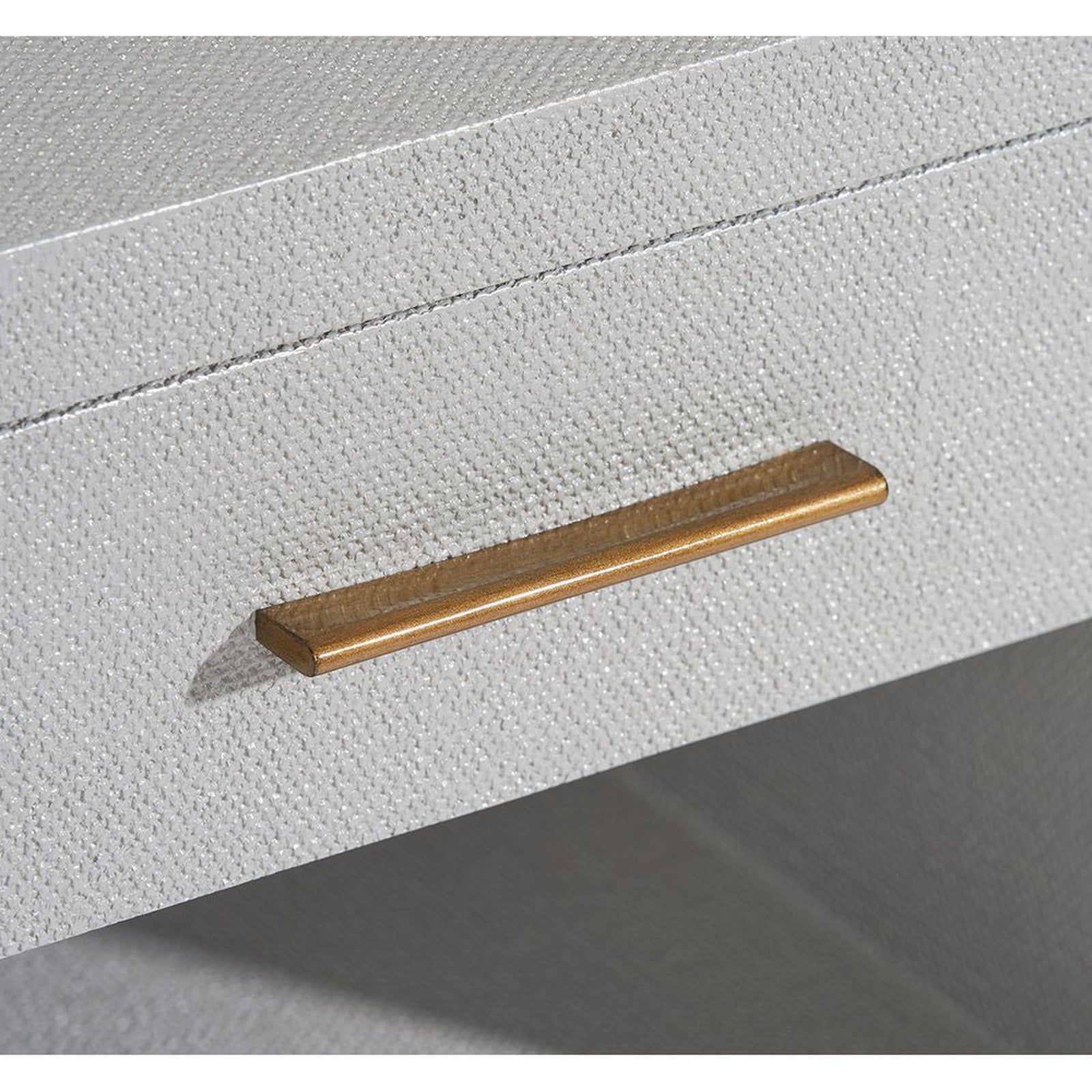 - A practical bedside chest retains its chic style when it features the texture of light grey faux linen / Caribbean sand faux linen / natural white faux linen and antique brass-finished hardware.