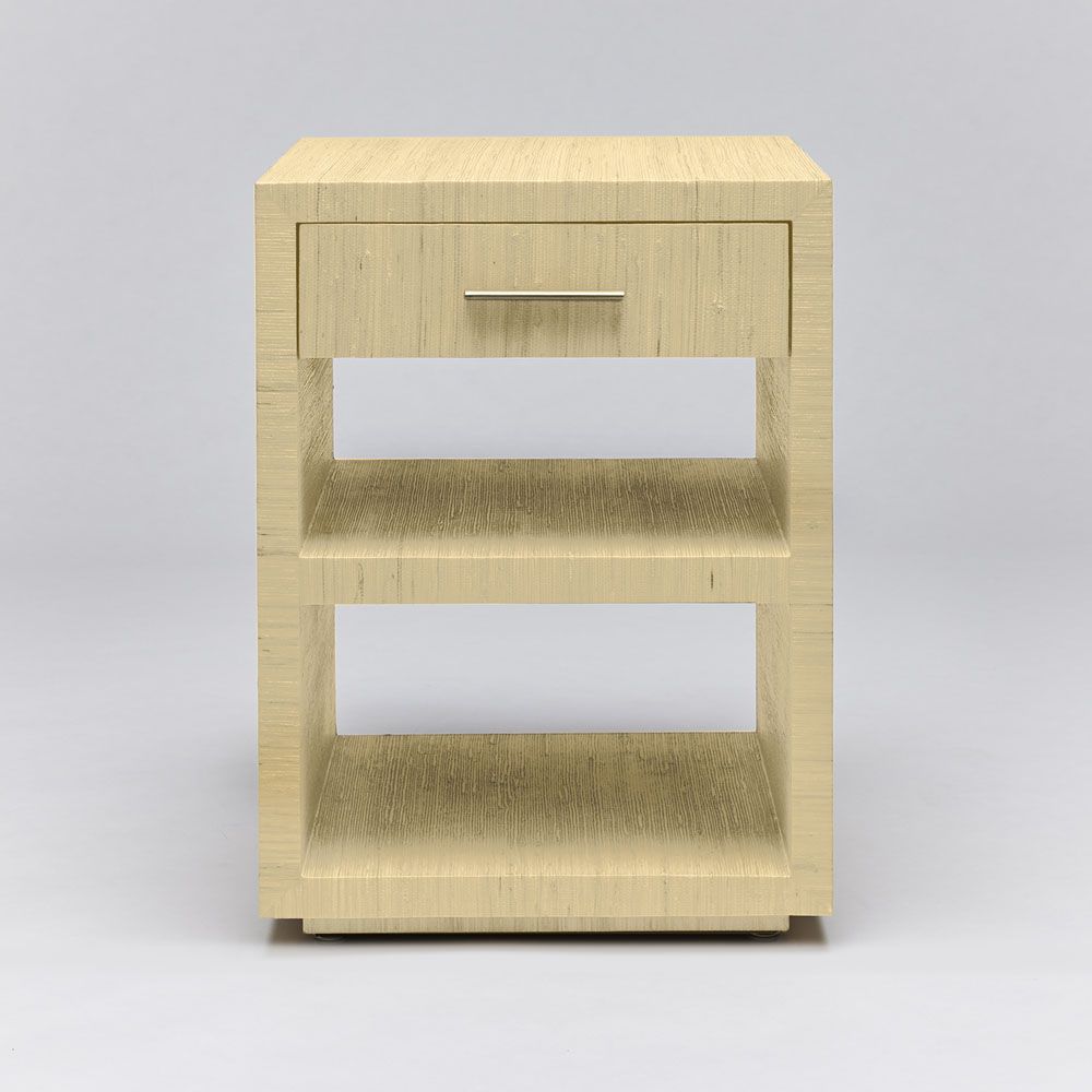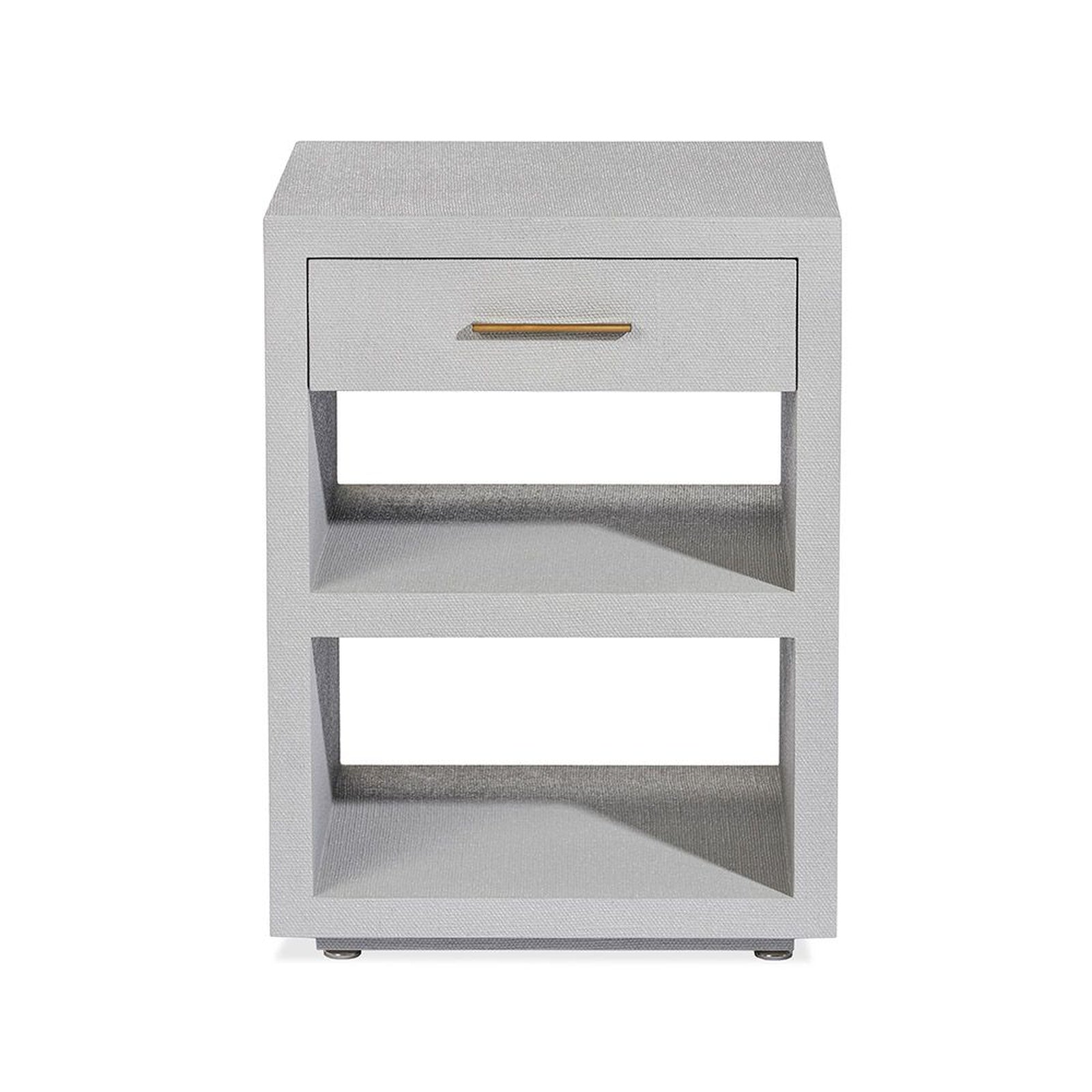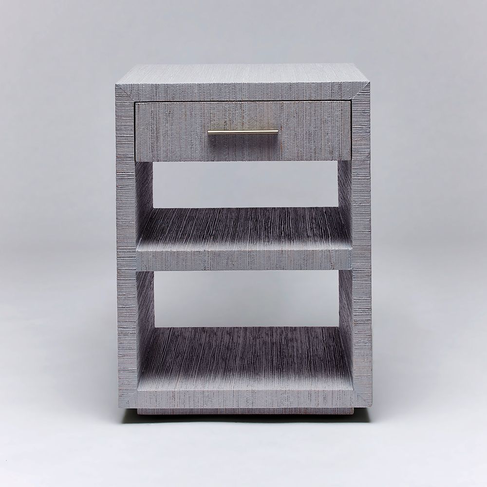 - Pairing iron hardware in a champagne silver finish with a mist sisal / natural sisal texture turns the Livia Small Bedside Chest into a natural / organic, yet super-chic, statement.