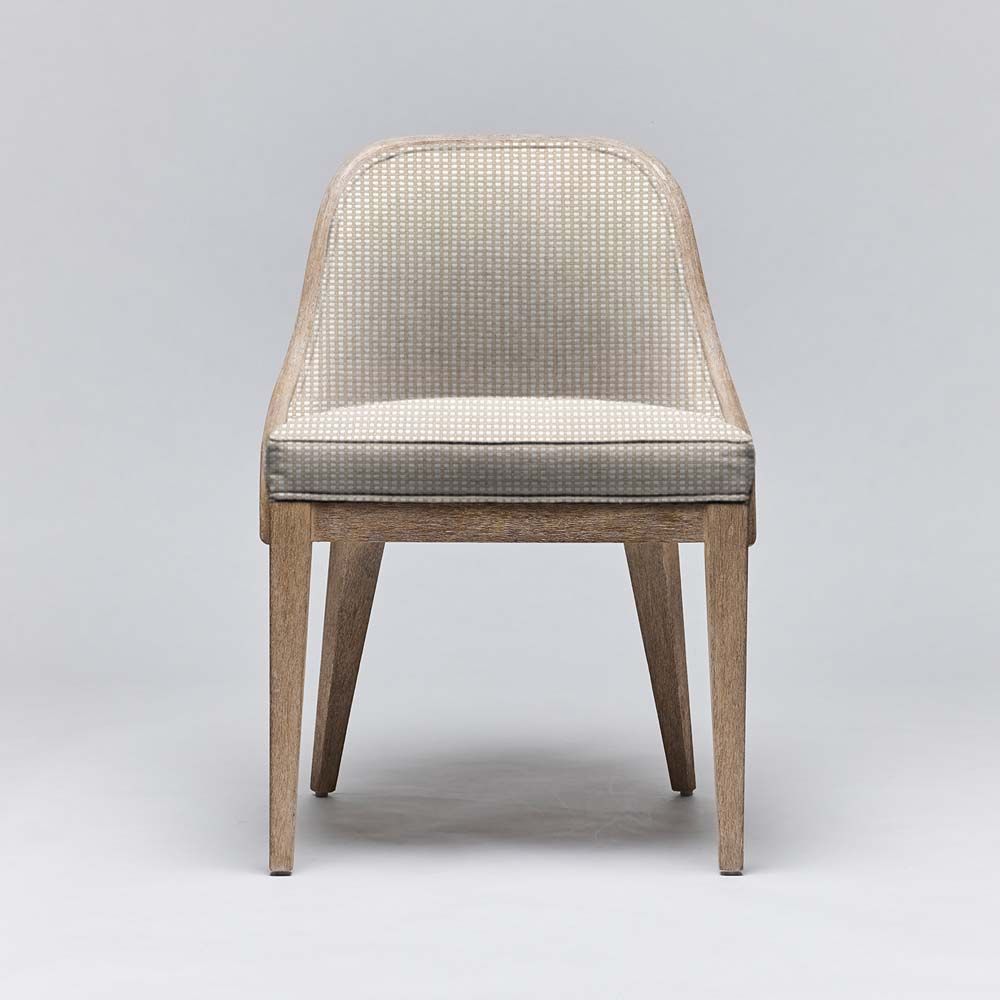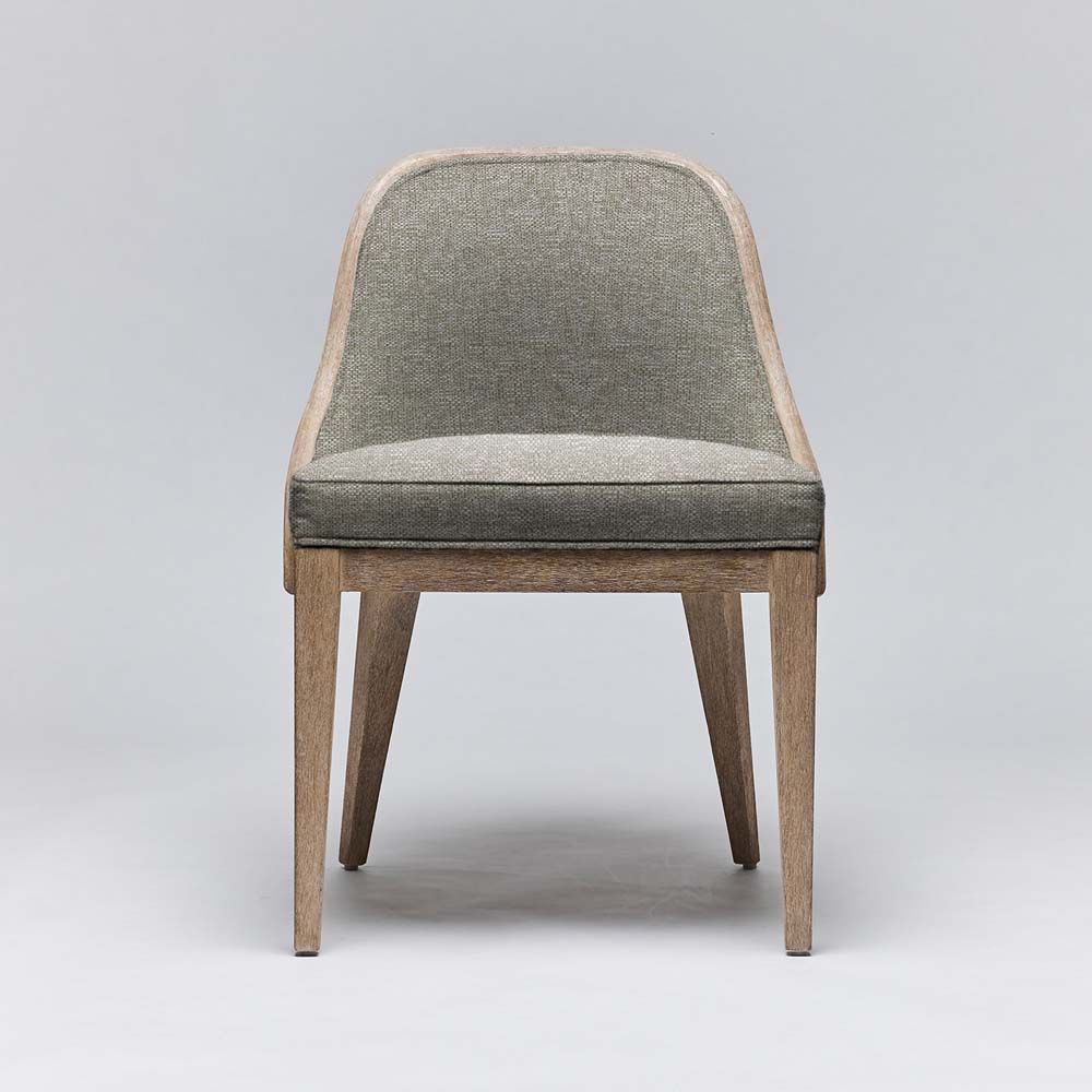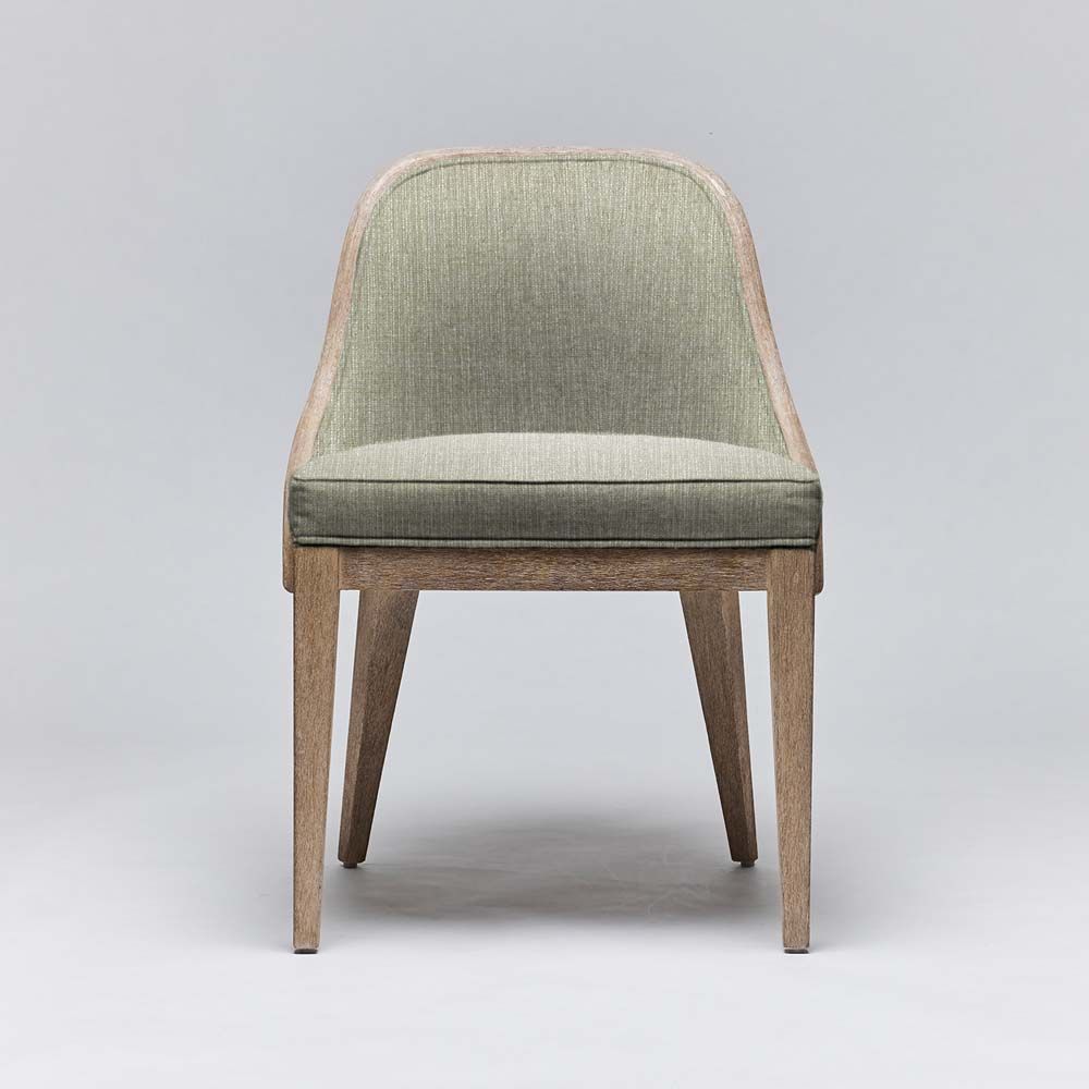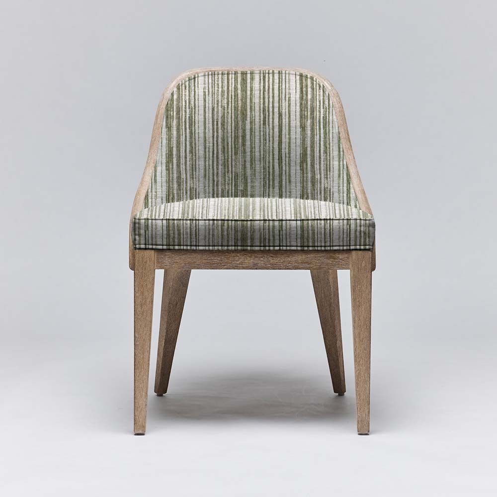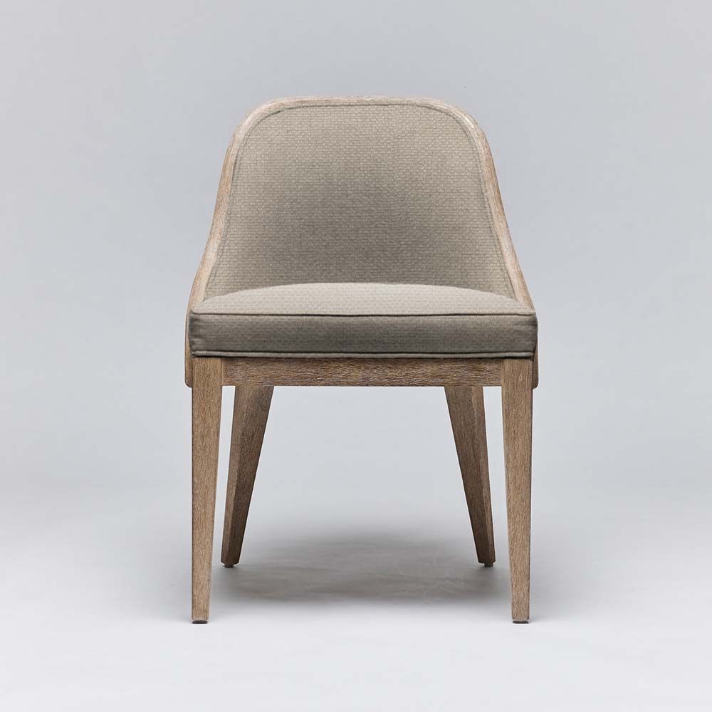 - Bringing natural flair to an elegant seating option, the Siesta Dining Chair features raffia cane surrounding a white ceruse mahogany frame.