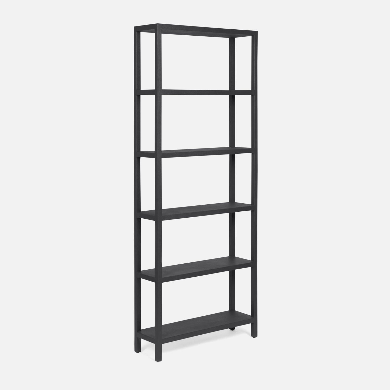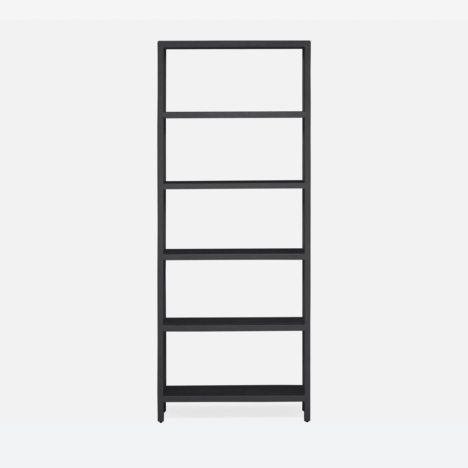 - The simple silhouette of our Jake features open-air shelving for easy display, plus a two-door base for out-of-sight storage.