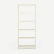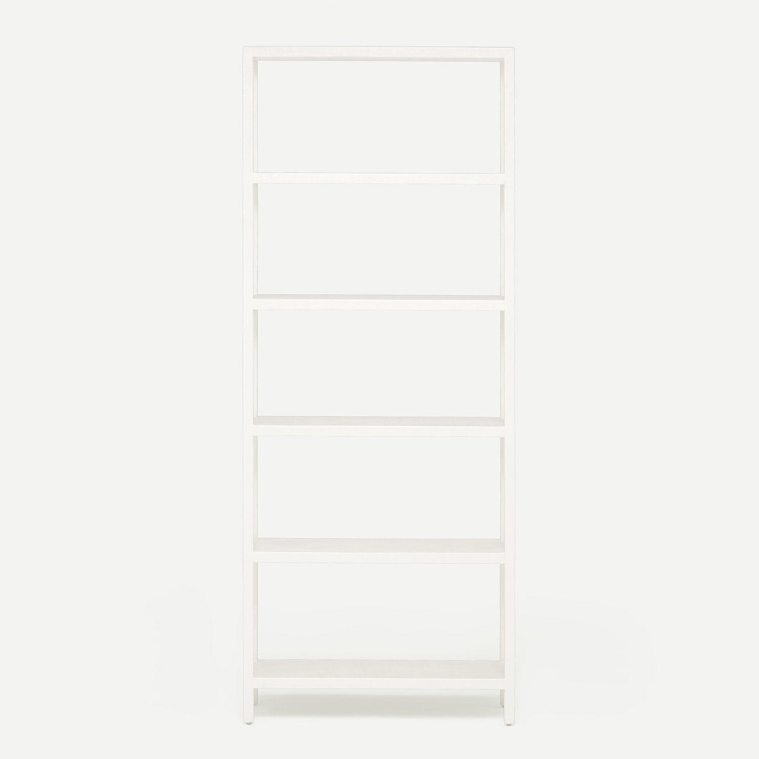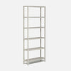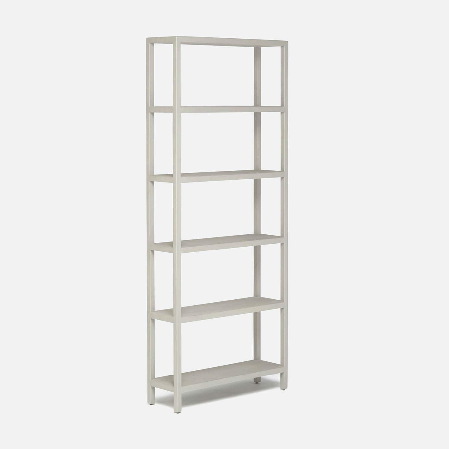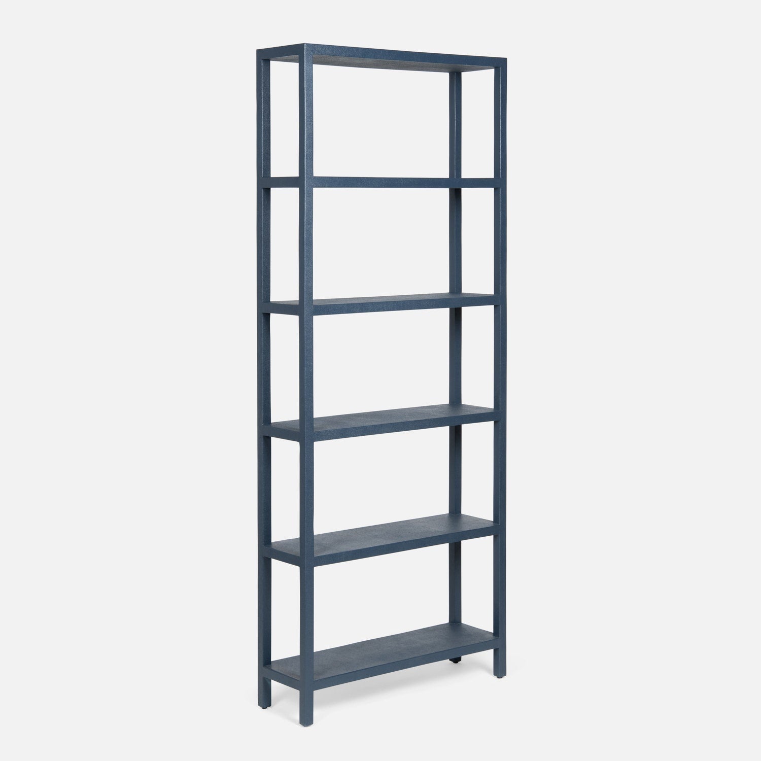 - Finished entirely in faux Belgian linen, the look is clean and modern with a natural texture that gives this piece an overall warmth-must-have shelving for living rooms, dining rooms, guest rooms, and more.