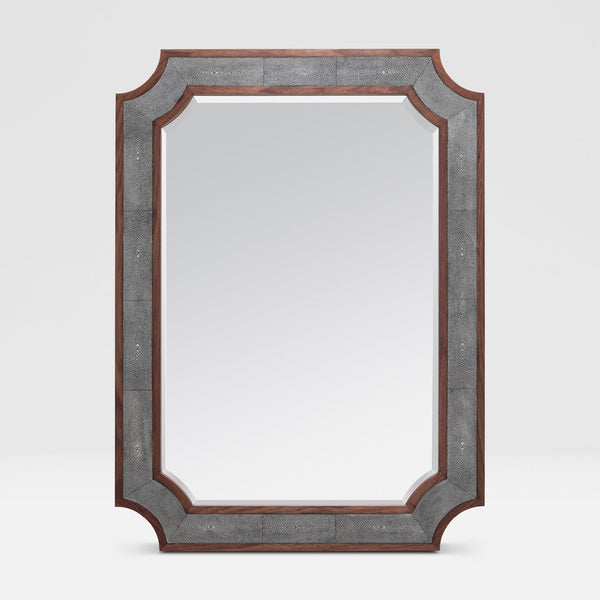 - Starting with a clipped-corner rectangle shape of our Vincent mirror, we made the James using our detailed faux shagreen.