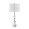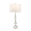 - The lamp features metal hardware in a Polished Nickel finish, contrasting the crystal-clear motif with cool metallic tones.