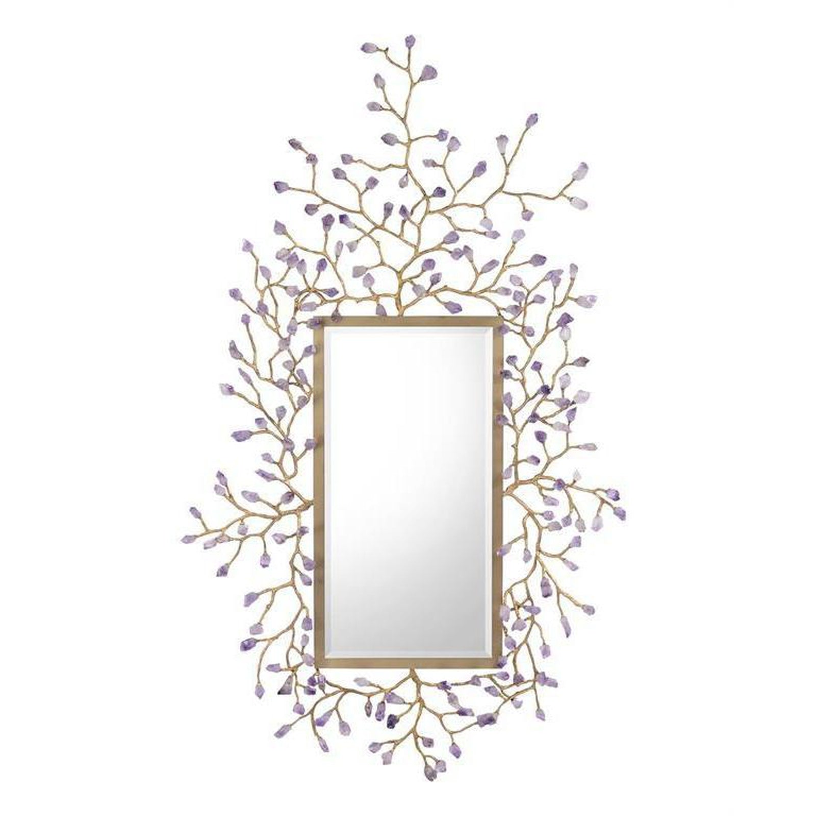 - Amethyst buds on organic brass branches are reminiscent of early spring in this exciting mirror.