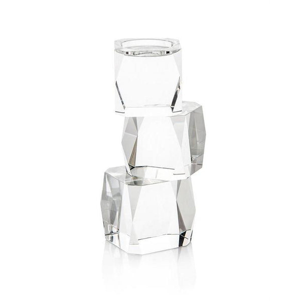- Three giant irregular cubes of crystal create this stunning candleholder.