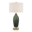 - Dress up a modern living room with the rich emerald green hue of this etched glass table lamp.