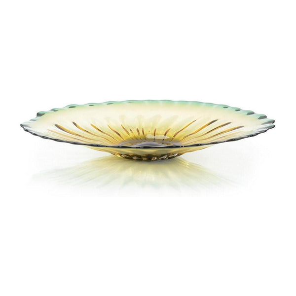 - This handblown art glass has an illuminating focal point in this oversized, oblong bowl.