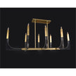 - This horizontal chandelier in acrylic has eight lights and an antique brass finish.