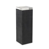 - A square pedestal with a faux crocodile inlay is finished in a variegated black with distressed gold cerusing.