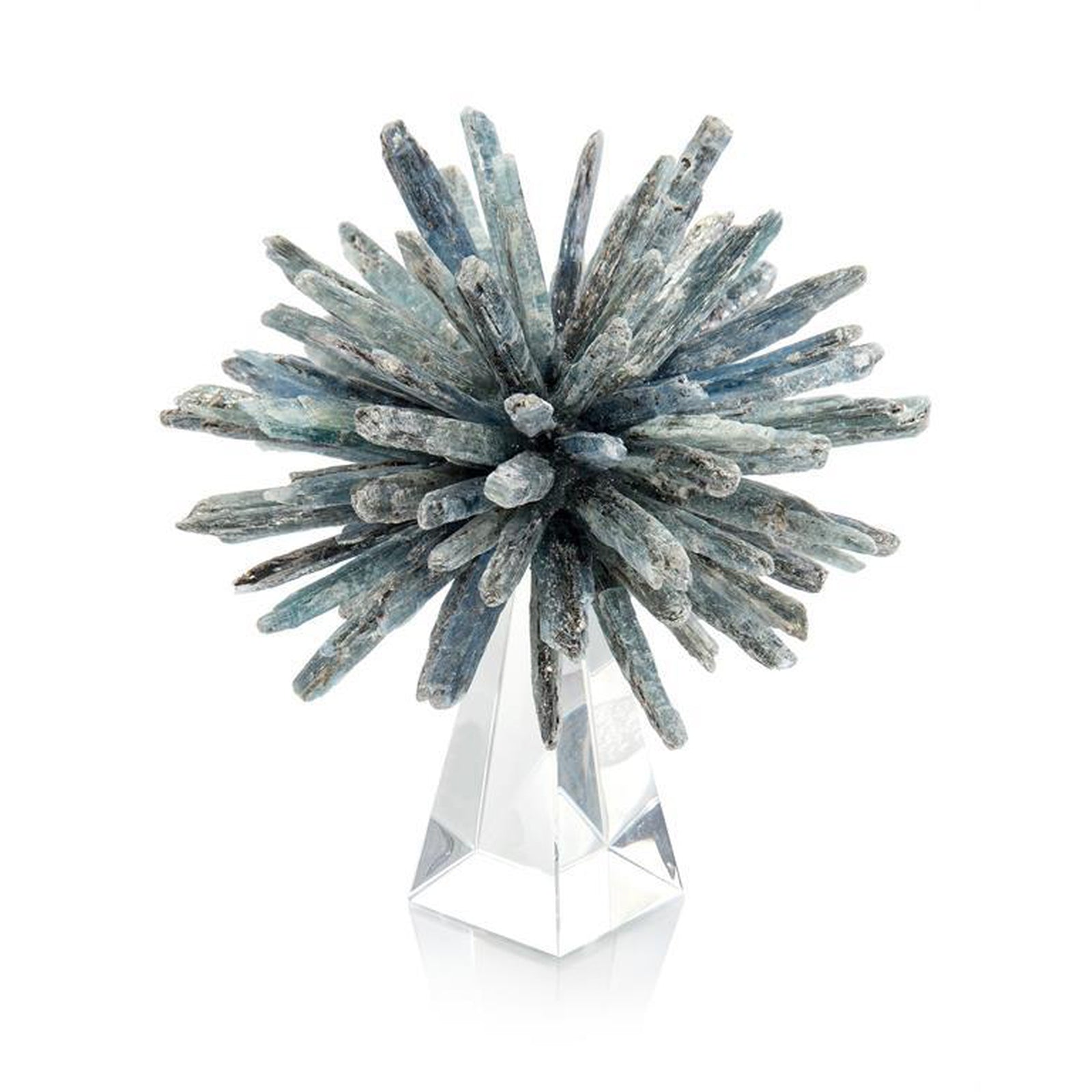 - A silvery grey-blue burst of color is created with this kyanite star on a crystal base.