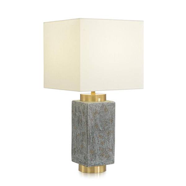 - The Maeve Table Lamp showcases a unique geometric look that is greatly elevated through exciting interplay between tones and materials