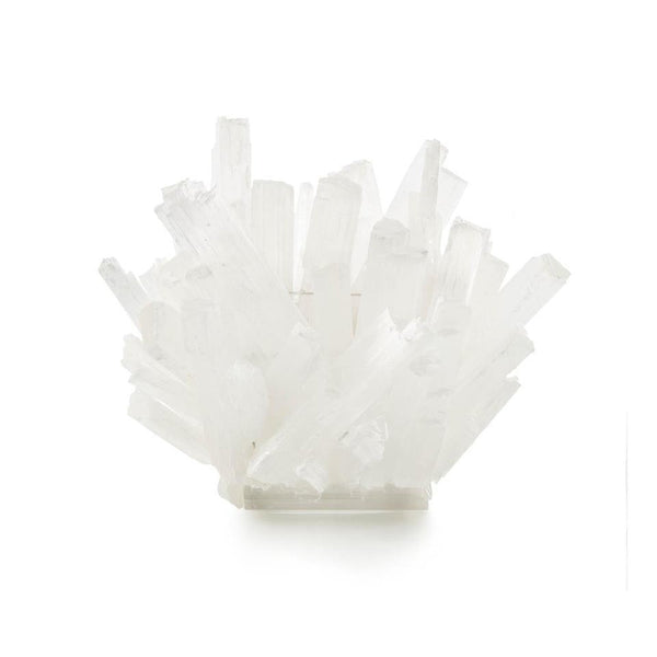 - Sticks of selenite are set at opposing angles to create this truly unique piece.