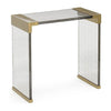 - Featuring a slender profile, the piece is elevated by stylish brass accents along the legs and corners