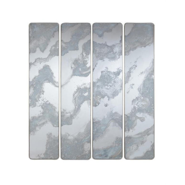 - This set of four mirrored panels features a hand-painted design in translucent white.