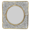 - Crafted from Polished Brass, the square frame holds a round mirror that is surrounded by four panels of natural agate stone