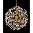 - A luminous, spherical, twelve-light chandelier finished in gold leaf with an explosion of quartz crystals.