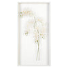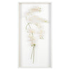 - Orchids are captured and printed directly on an acrylic panel and framed in a white shadow box.