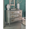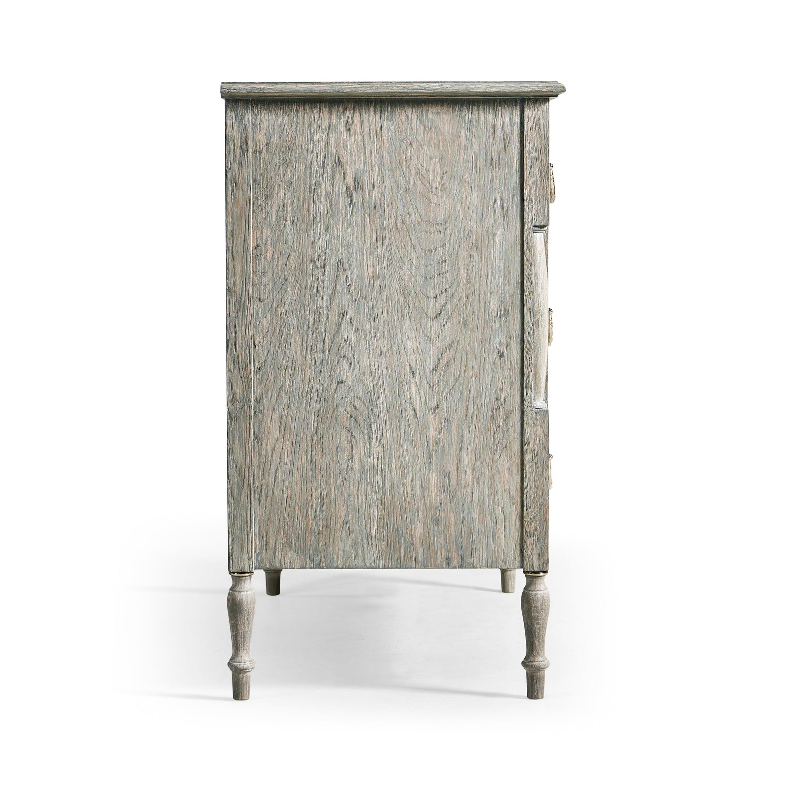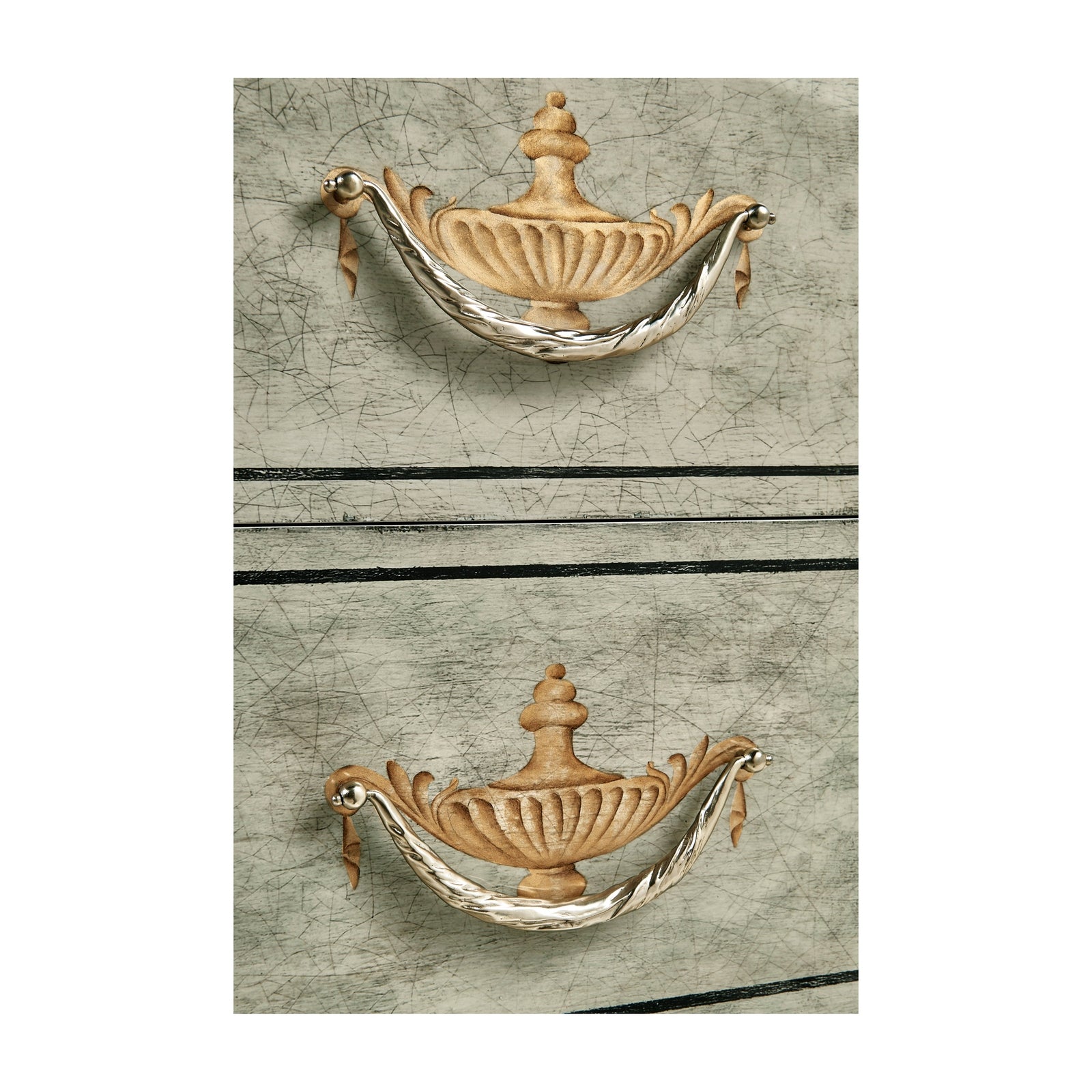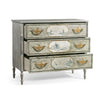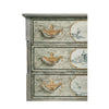 - Chipped Blue Oak chest with Delft inspired hand painting covered with a crackled glaze.