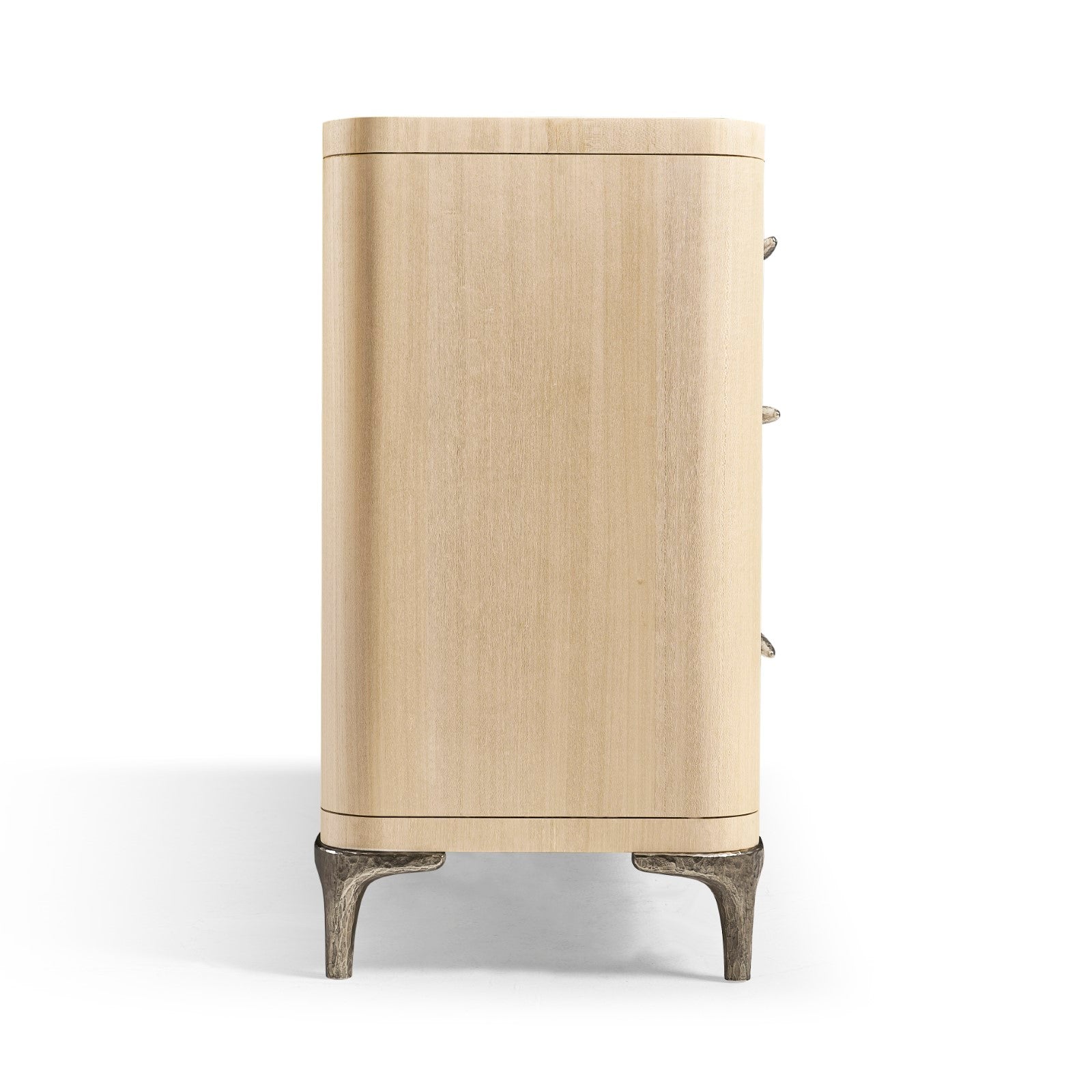 - Impressive and spacious, the Undercurrent dresser offers both functionality and polish. Both the legs and hardware are made from stainless steel patterned from hand-carved wax moldings at our in-house Foundry. The six (6) drawer fronts are all dyed Koto veneer with a carving effect mimicking sand patterns created by water currents. Used as a stand alone piece or paired with its matching bed and nightstand, this dresser will stun.