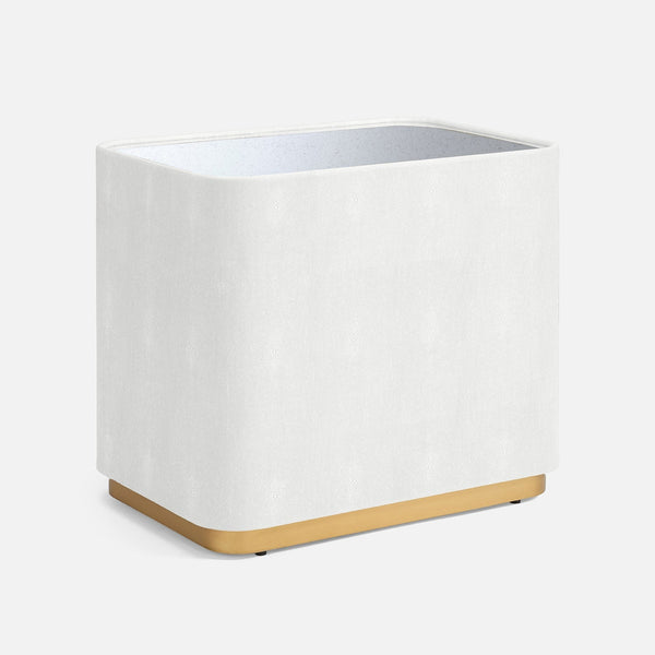 - Defined by its faux shagreen finish, round corners, and antiqued mirror top, this sophisticated statement ushers in a new era of elevated living.