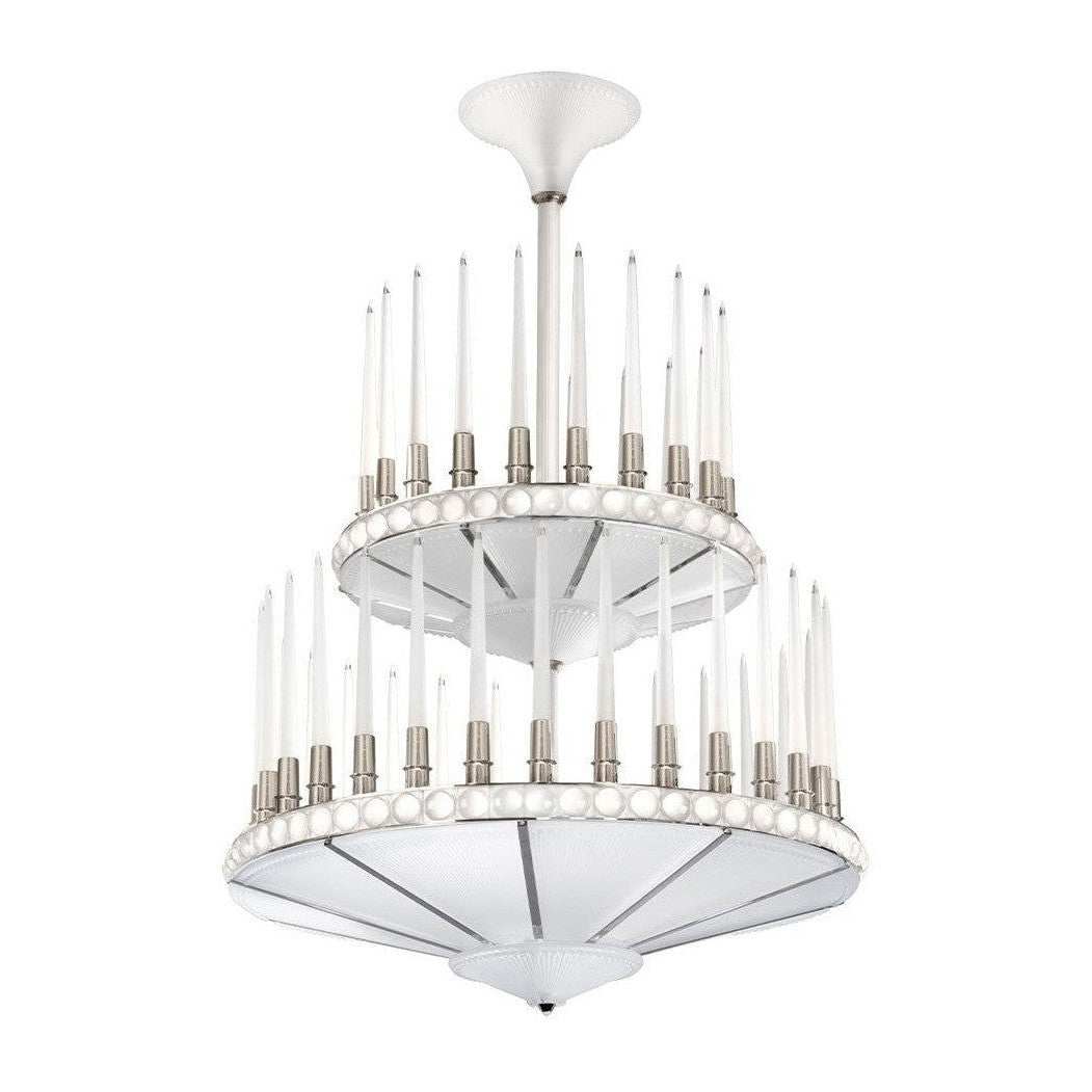 - Carved with stripes and cabochons with the satin finish emblematic of Lalique, the crowns of light are adorned with slender crystal candles, arranged in a rhythmic rigor.