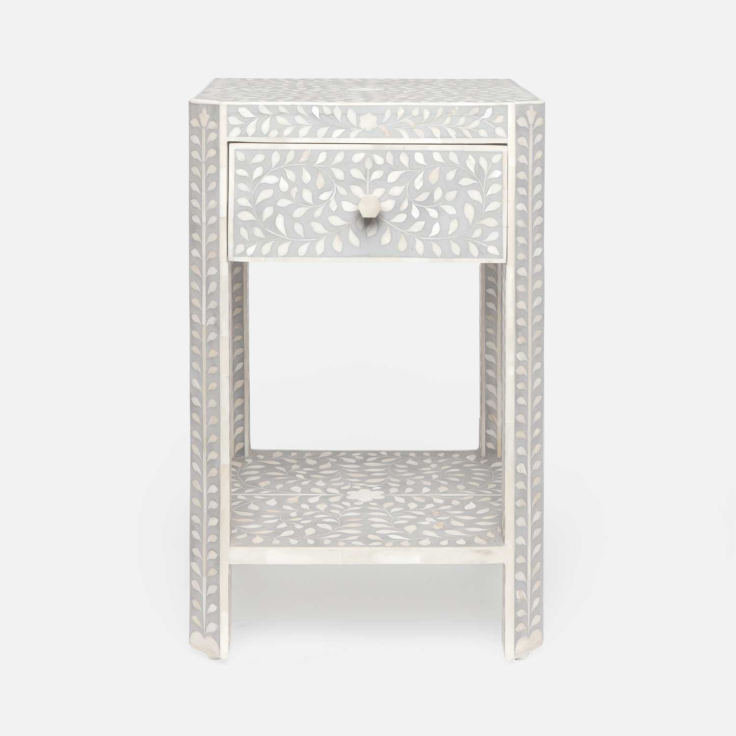 - Our Lexi nightstand features clipped corners and a beautiful design, highlighting a simplified and updated Indian pattern.