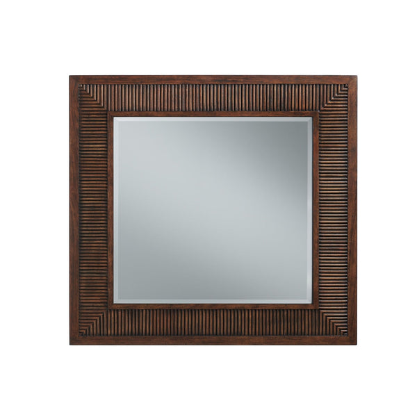 - The Helena square mirror features a transitional mitered tambour frame with beveled mirror plate.