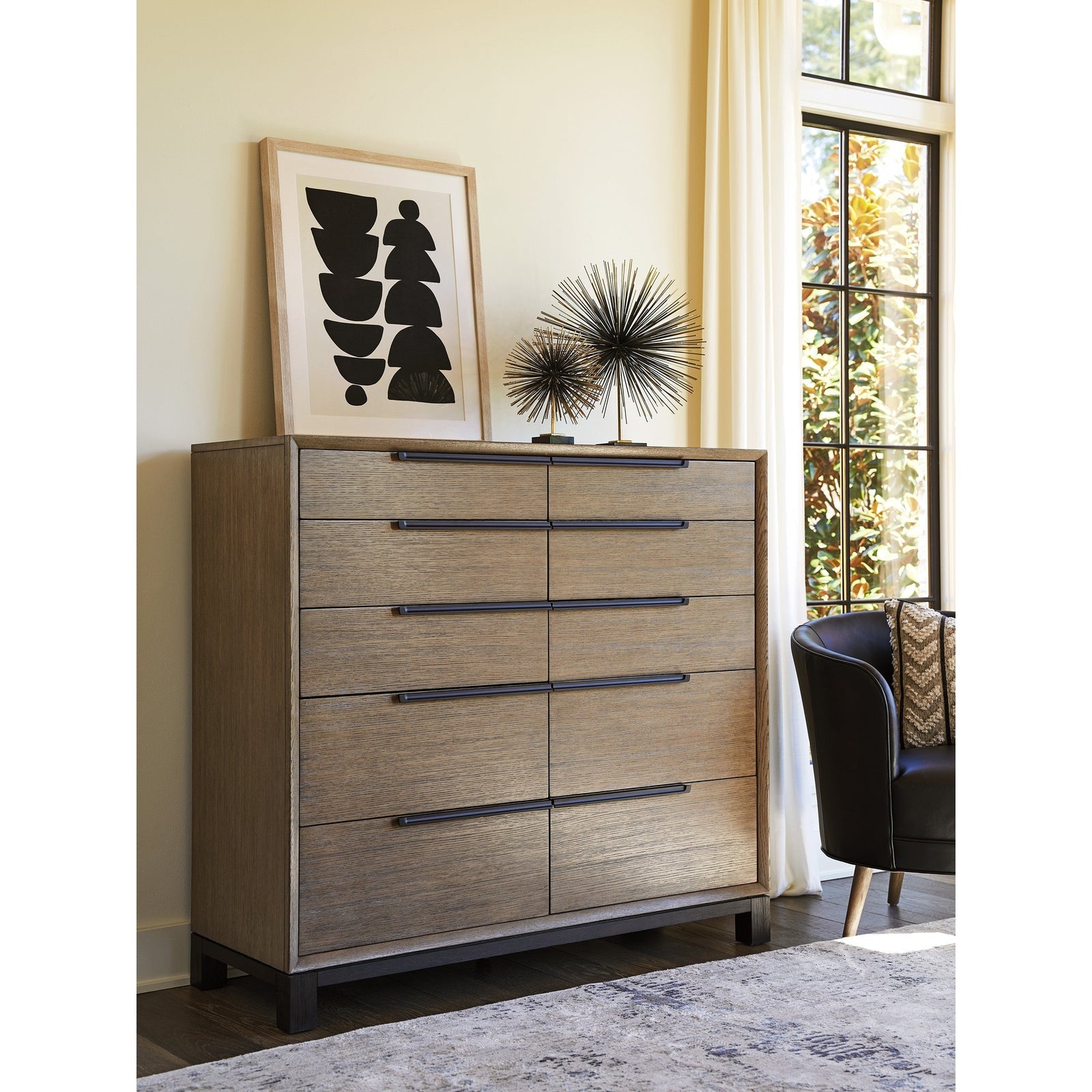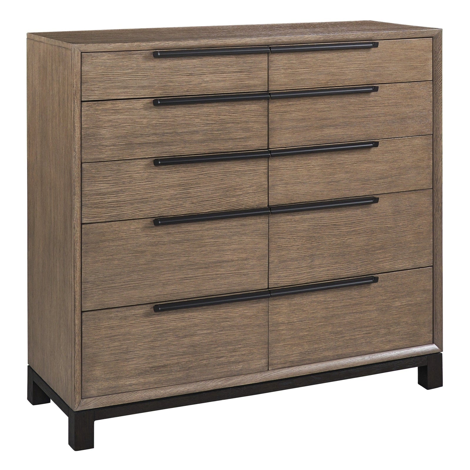- The 10 soft-close drawers within a chamfered frame are contrasted by the deep espresso base and feet.