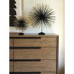 - Surfaces are gently wire-brushed to enhance the woods natural grain, while sleek custom hardware, finished in dark umber, offers a striking complement.