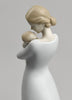 - Mother figurine in matte satin green porcelain with her baby in her arms wrapped in a white blanket.