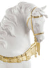- Horse sculpture in matte porcelain with white enamels and golden luster on the arabesques that decorate the harness and blanket.