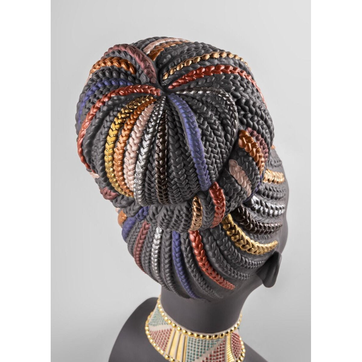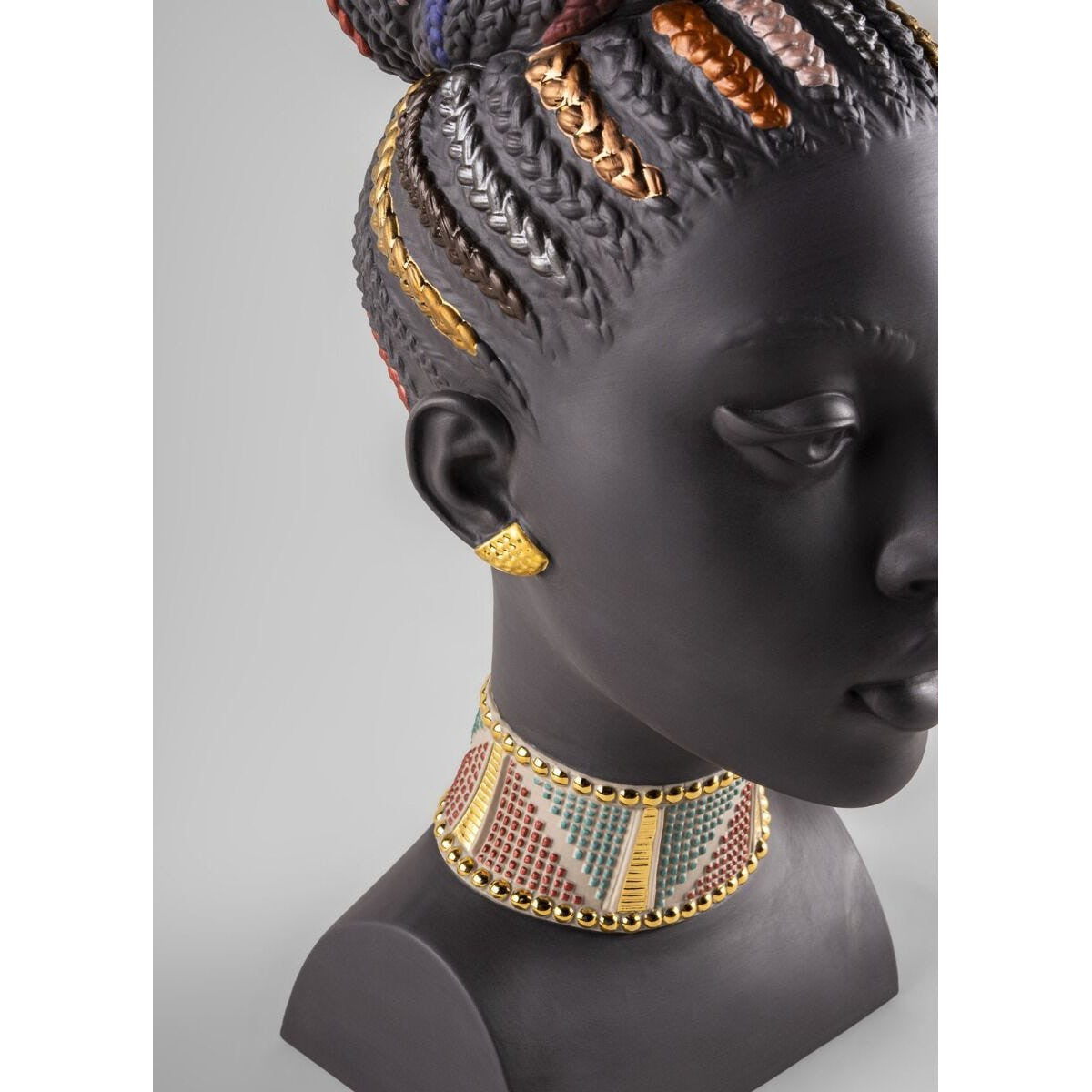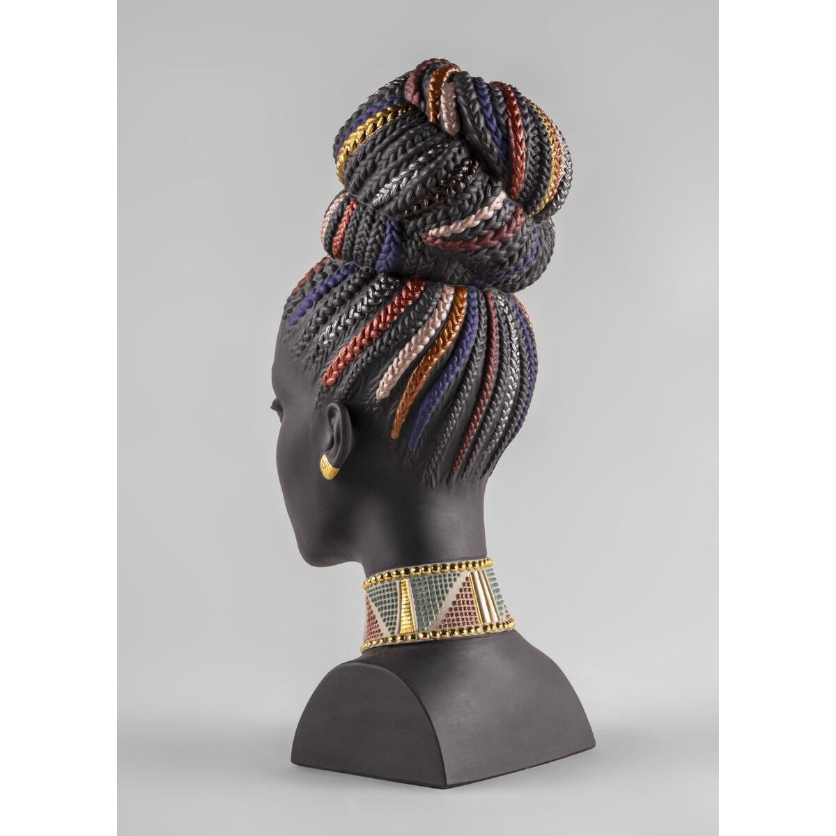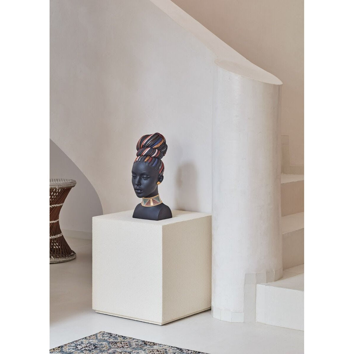 - Made in matte black porcelain, this bust of a woman borrows its inspiration from the symbolism and intense coloring of African culture.