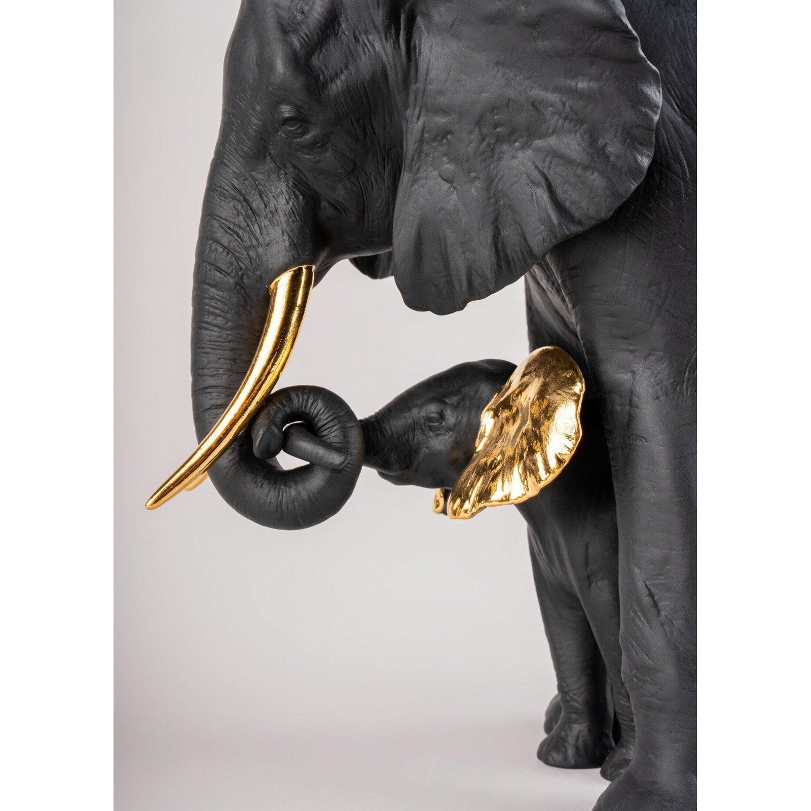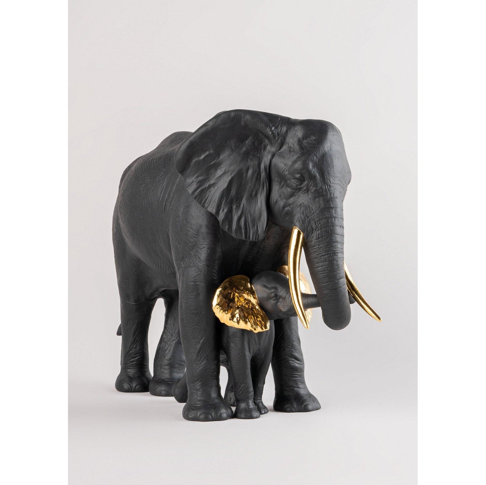 - A heartwarming portrait of an elephant and her calf in a new creation from the Boldblack collection, characterized by its daring decoration.