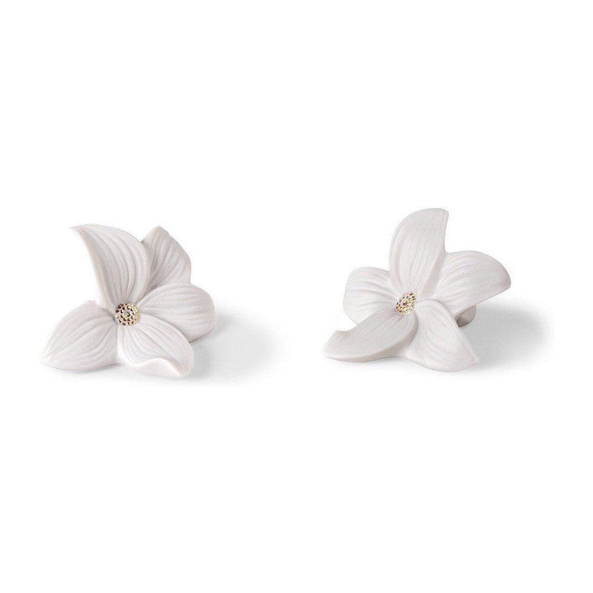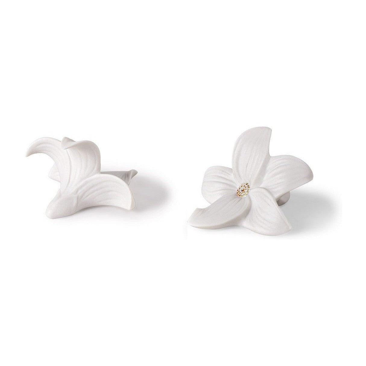 - Sculpted in white porcelain with a touch of golden luster, the painstaking execution faithfully reproduces the unmistakable form of this flower.