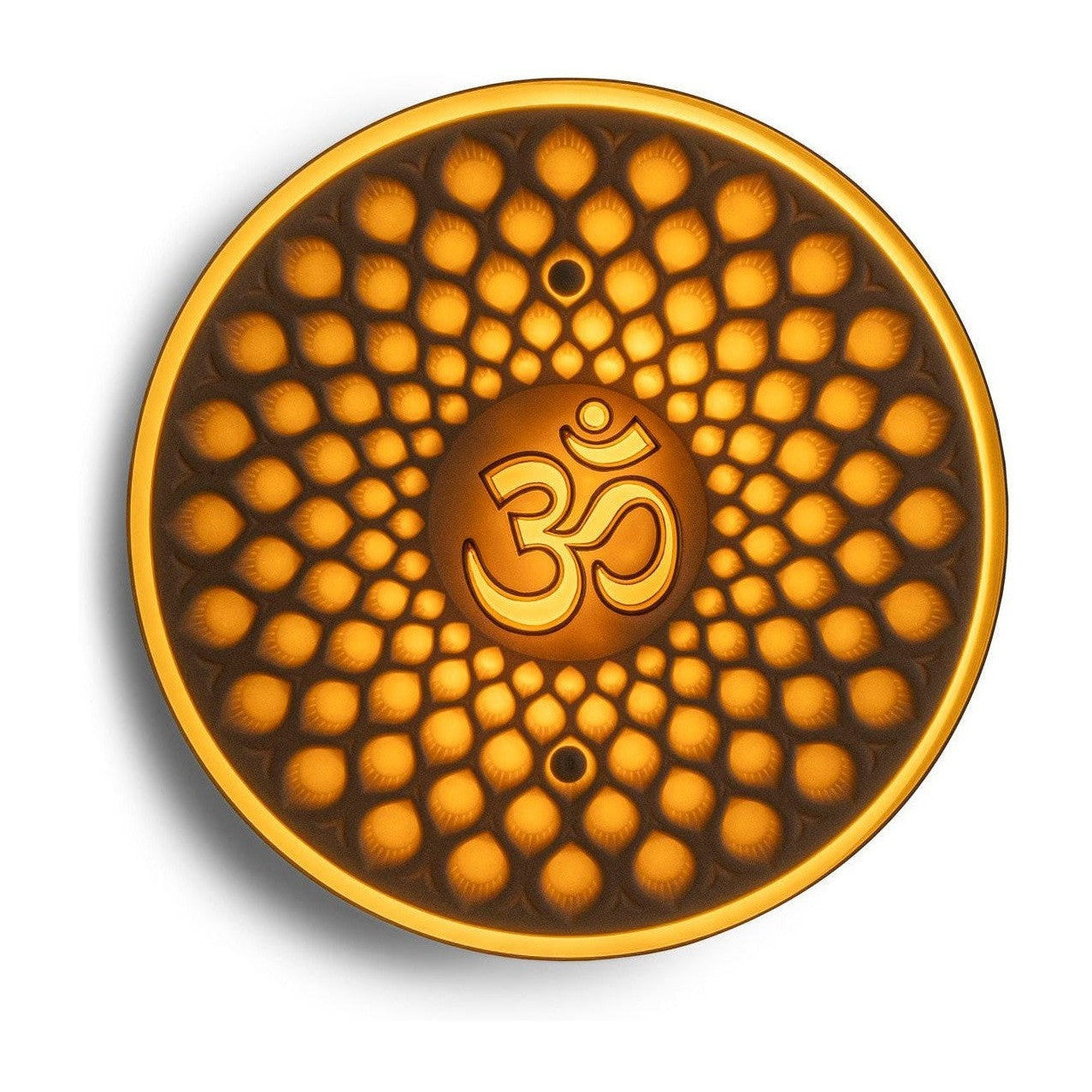 - This transcendental symbol, the sound from which all others emerge, is represented in golden luster in the center of the wall lamp.