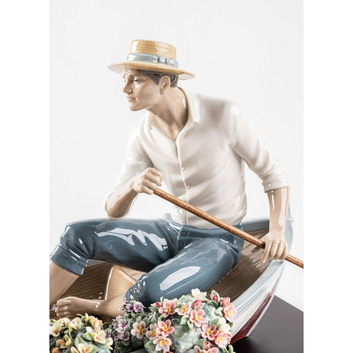 - Worth highlighting is the meticulous bas relief handwork to recreate the embroidery of the lady’s dress and shawl, the patterns on her parasol and the etchings on the boat, conveying so well the grain and texture of wood.
