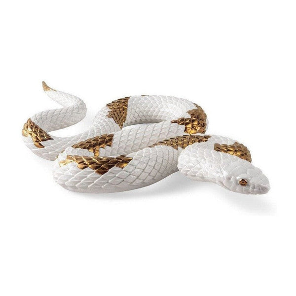 - Exquisitely modelled down to the tiniest detail, the white porcelain underscores the particular texture of its skin, in this decoration contrasting with the copper luster of the details, also used to highlight its eyes.