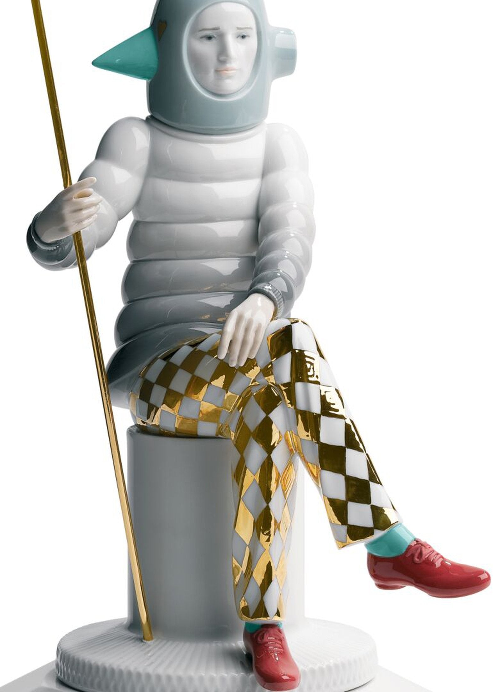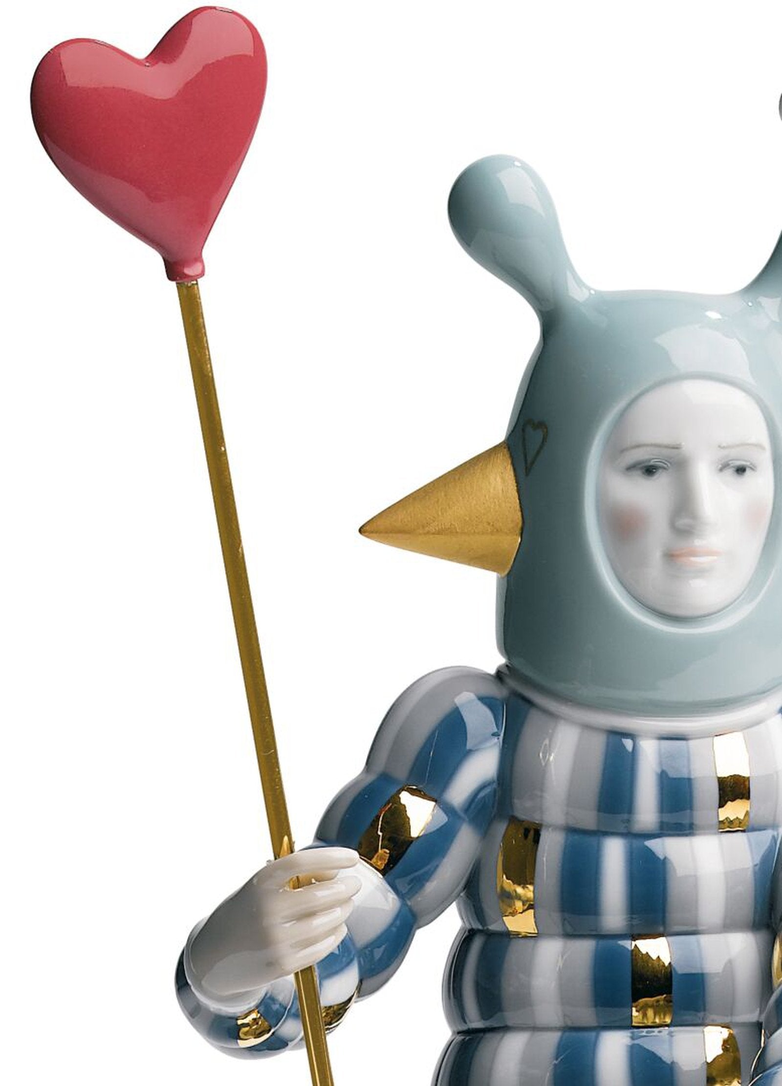 Glossy porcelain figurine designed by Jaime Hayon with a modern design and a red heart. Like all the pieces in Jaime Hayon's The Fantasy Collection, this creation arises from the fusion of a classic Lladró theme such as love and the playful sense and fantasy that the Spanish creative Jaime Hayon brings to his designs. This imaginative and surprising representation of a lover shows the elegant and casual look that surrounds the entire collection.